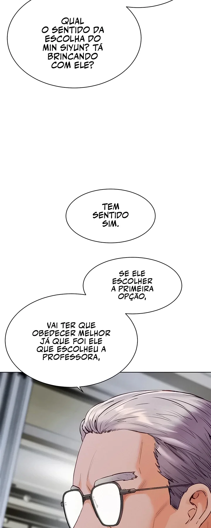 E temos a última professora que parece ser solteira, séria e com alguns problemas que ainda não foram mostrados, mas que tem algum interesse íntimo e mais com o Prota e o que ela vai fazer em relação à proposta do pai babaca às vezes do Prota, de continuar sendo a professora do Prota
